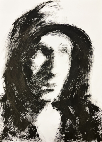A series of spontaneous self-portraits made with ink and a paintbrush affixed to a 1 meter long handle.